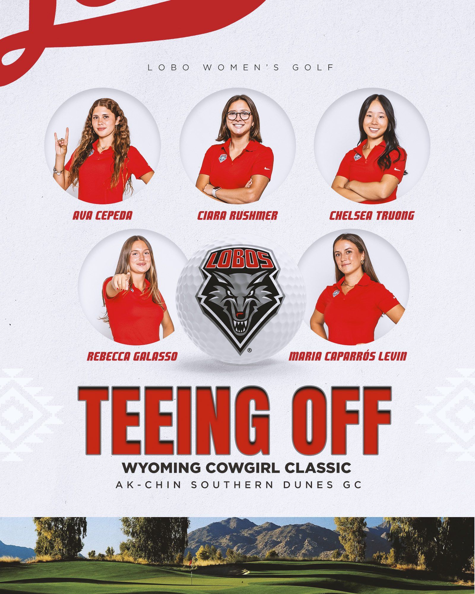 🔺 Round One. The women’s golf team played rounds one and two of the Wyoming Cowgirl Classic. New Mexico is in 13th place with a score of 596 (+20). Chelsea Truong leads the team in 29th place individually.