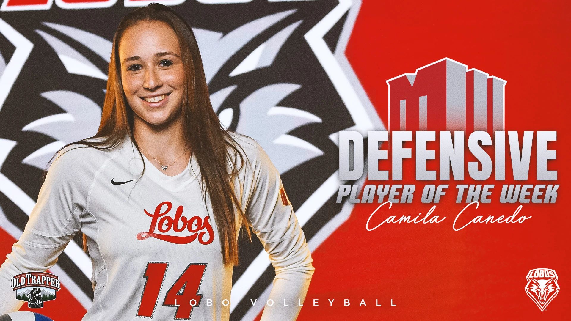 🔺 Defense. The Mountain West Conference named Camila Canedo the Defensive Player of the Week for volleyball. Canedo led the league in digs last week with a career-high 30-dig performance. In two matches last week, Canedo had a total of 46 digs and 5.11 digs per set.