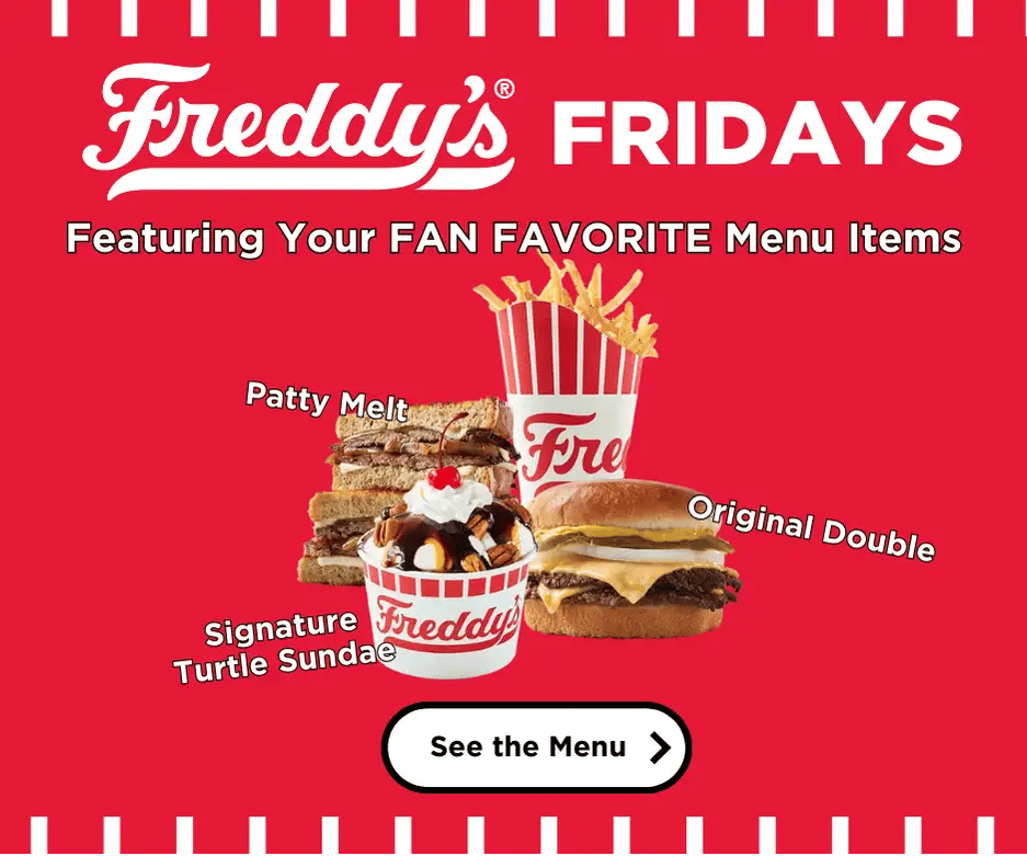 March Madness is right around the corner, so get ready with your Freddy’s Fan Favorite menu items! Try our delicious Patty Melt, famous signature Turtle Sundae, and Original Double with Cheese! Come for Freddy’s Fridays at any one of our six ABQ locations including our restaurant on Central Ave across from the Johnson Field on the UNM campus.
